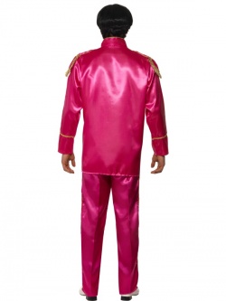 Pánský retro kostým seržanta Peppera, vytvořený legendární skupinou The Beatles se skládá z lesklého saka a kalhot v růžové barvě se zlatými ozdobami.
