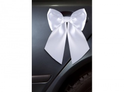 Svatební dekorace na auto v podobě saténové mašle o velikosti 18 cm, v sadě 2 kusů.