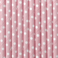 Sada 10 kusů světle růžových brček s puntíky nesmí chybět na žádné párty. Velikost 19,5 cm.