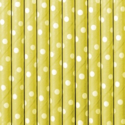 Sada 10 kusů žlutých brček s puntíky nesmí chybět na žádné párty. Velikost 19,5 cm.
