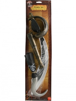 Sada pro všechny správné piráty obsahuje šavli, pásku přes oko, dalekohled a hák na ruku.