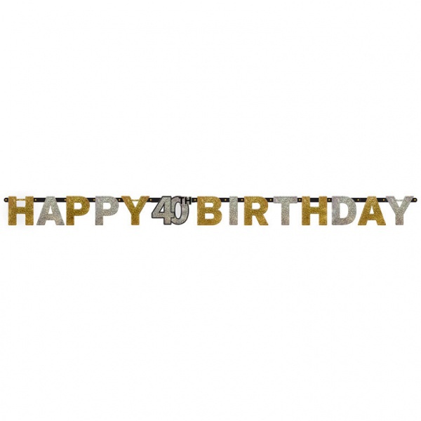 Stříbrno-zlatá girlanda Happy Birthday 40