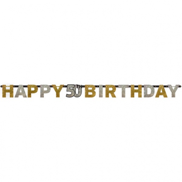 Stříbrno-zlatá girlanda Happy Birthday 50