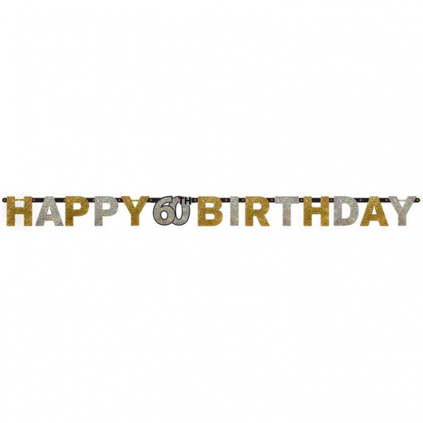 Stříbrno-zlatá girlanda Happy Birthday 60
