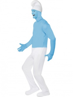 Pánský kostým pohádkového Šmouly je tvořen modro-bílou kombinézou, čepicí a rukavicemi. Vhodný na dětskou párty či karneval.