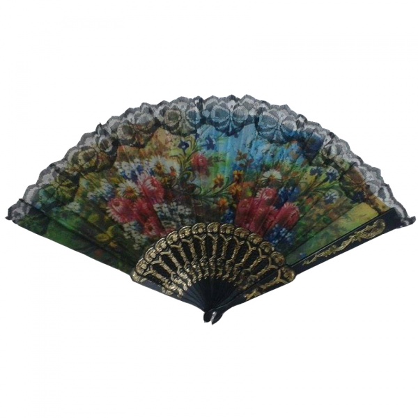 Vějíř s květinovými vzory je vhodným doplňkem na jakoukoliv oslavu, karneval, taneční párty atd.