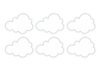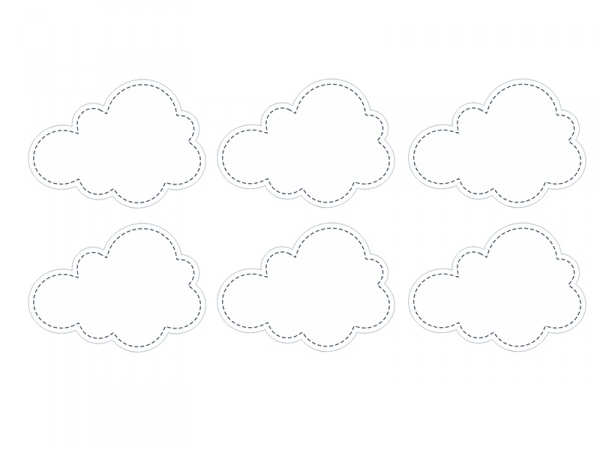 Sada 6 kusů nálepek s obláčky, vhodná na sklenice nebo krabičky.