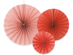 Papírové rozety červené v balení 3 kusy o rozměrech 40, 32 a 23 cm. Skvělá dekorace na oslavy, svatby, narozeniny, karnevaly.