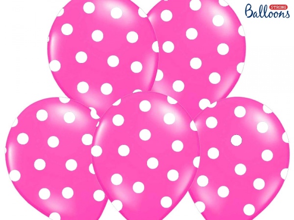Pokud jste milovníky puntíků, tak je tady přesně pro Vás, naše puntíkatá nabídka. Růžový balónek s bílými puntíky o velikosti 30 cm. Balení obsahuje 6ks.