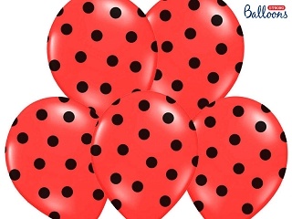 Úvod > Karnevalové doplňky > Dekorace > Červený balónek s černými puntíky - 6ks