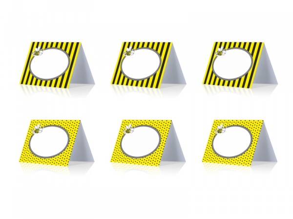 Jmenovky se včelkou v sadě 6 kusů o rozměrech 8 x 6,5 cm, jsou skvělým doplňkem dětské včeličkové párty.