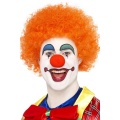 Oranžová afro paruka je vhodná jako doplněk klaunského kostýmu.