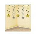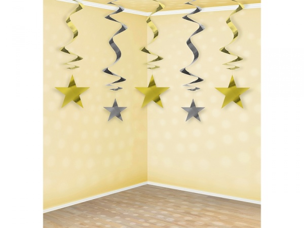 Závěsná spirálová girlanda se zlatými a stříbrnými hvězdami v délce 60 cm, je skvělá dekorace na filmovou párty v duch Hollywoodu.