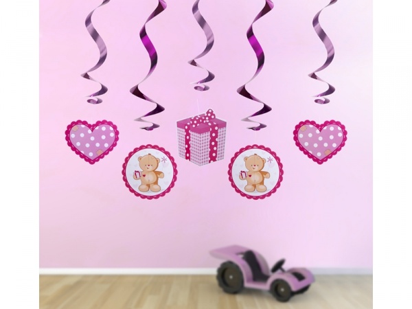 Pojmy spojené s tímto produktem: girlanda, závěs, spirála, růžová, pro holky, dekorace, medvídek, výzdoba, oslava