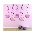 Růžová závěsná spirála s medvídky, srdíčka a dárky. V balení 6 kusů. Délka 60 cm. Ať žije holčičí párty.