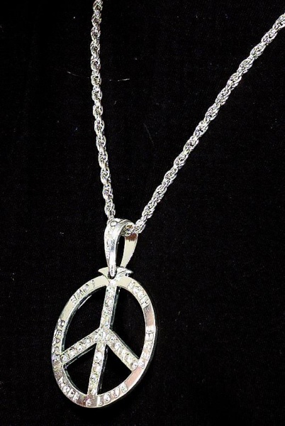 Stříbrný mírový znak 60. léta ve stylu hippe , délka řetízku 44 cm.