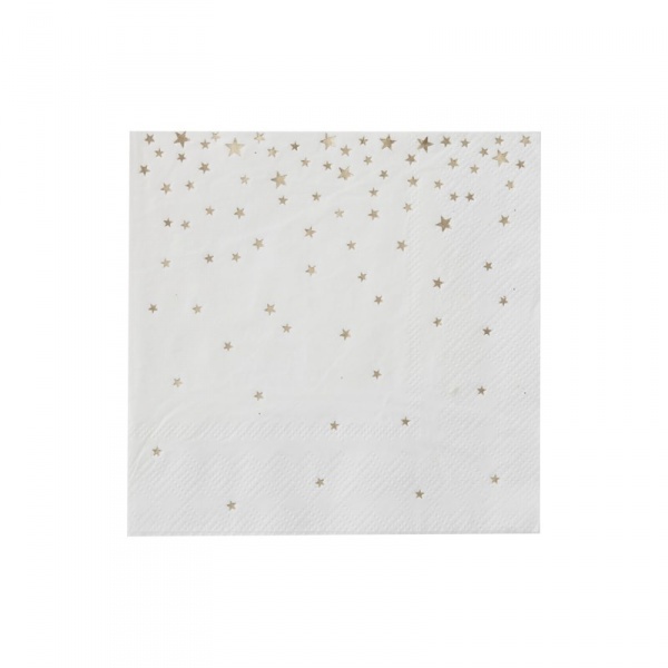 Sada 16 kusů papírových ubrousků se zlatými metalickými hvězdičkami styl Metallic star o rozměrech 33 x 33 cm.