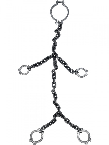 Velké vezeňské okovy na všechny končetiny a dokonce i krk.