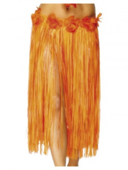 Havajská sexy sukně Hula hula v oranžovém provedení. Pásek z květin. Délka 75 cm.