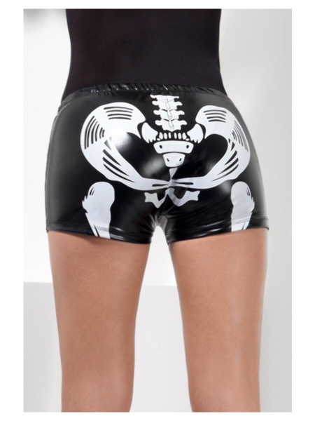 Přiléhavé sexy kraťasy Miss skeleton v černé barvě s bílým kosterním potiskem. Lze využít na Halloween párty.