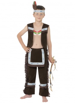 Kostým Indián obsahuje vestu, kalhoty a čelenku. Tento kostým má využití, jak na karnevalu, tak na letních táborech zaměřených na indiánskou tématiku.